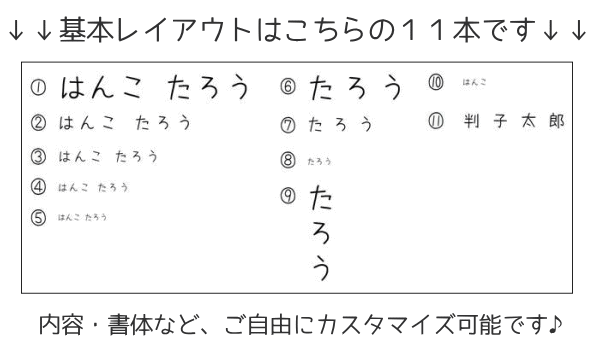 注文してからレイアウトをすぐに作ってくださり、そのあと字の大きさ、書体など変更を2回ほどお願いしましたが、迅速で対応もとても丁寧でした。上の子の時に作って良かったので今回もお願いしましたが、また必要になったら単品でもお願いしたいと思います。