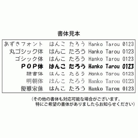 印面にする内容をこちらにご記入ください。 (ご注文時に備考欄にもご記入いただけます。また、後からメールにてお知らせいただいても大丈夫です) ※複数注文で書ききれない場合などは備考欄に追記してくださいませ。 ※ひらがなのみ、漢字のみ、ローマ字のみといったご注文もOKです。